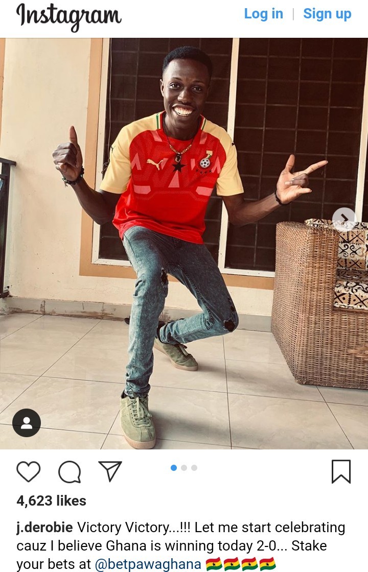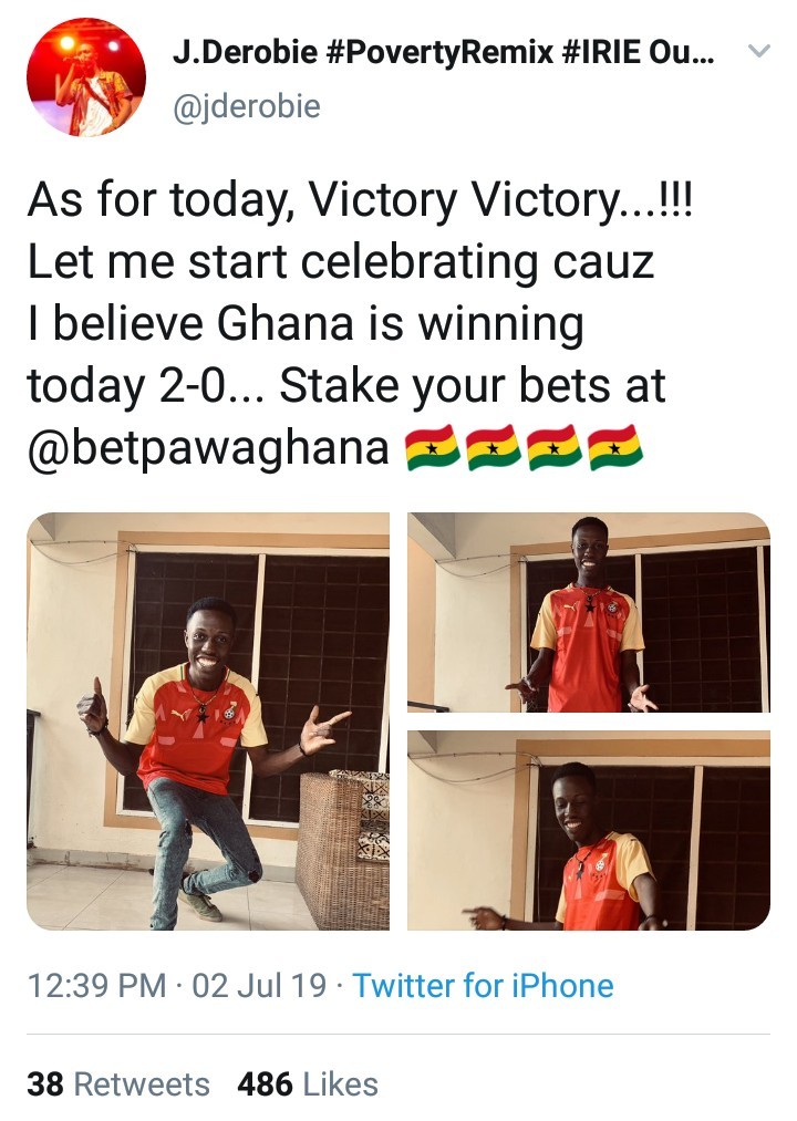 J.Derobie, Ghanaian dancehall artiste took to his social media handle to predict 2-0 in favor of the Black Stars Of Ghana.