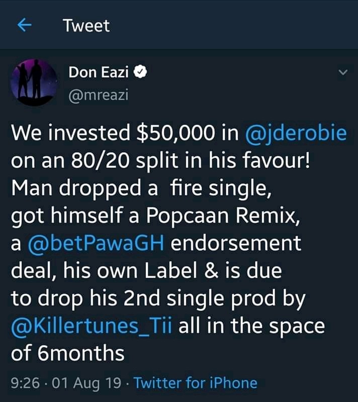 We Invested $50,000 In J.Derobie And He Got Himself Other Opportunities – Mr.Eazi